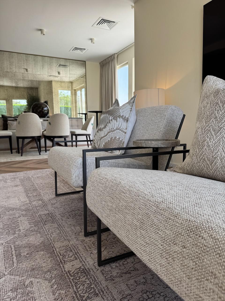 The interior palette is intentionally restrained—soft neutrals, warm textures, and natural finishes layered with care. Rather than relying on statement moments, the design builds its richness through depth, tactility, and thoughtful repetition. Lighting was treated as an architectural tool, shaping atmosphere and emphasizing materiality rather than simply illuminating rooms.