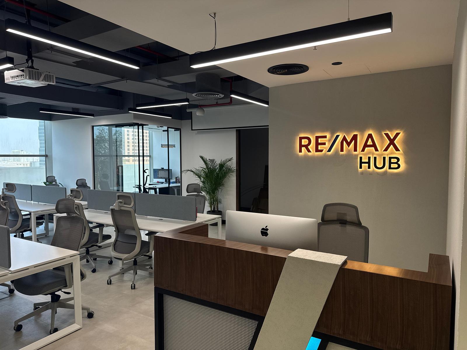The RE/MAX Hub office in Dubai Media City was designed as a purpose-built real estate brokerage environment, shaped around the operational flow, culture, and performance requirements of the RE/MAX model.